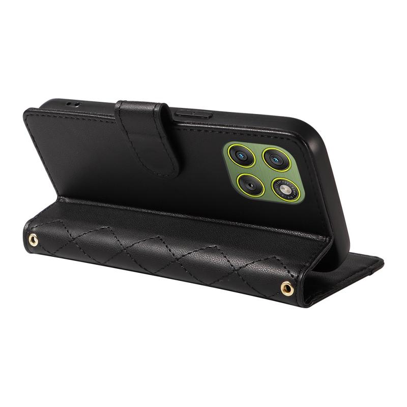 Custodia a portafoglio trapuntata di lusso con tracolla e cinturino per Motorola Edge 70 - Copertura protettiva con motivo a rombi