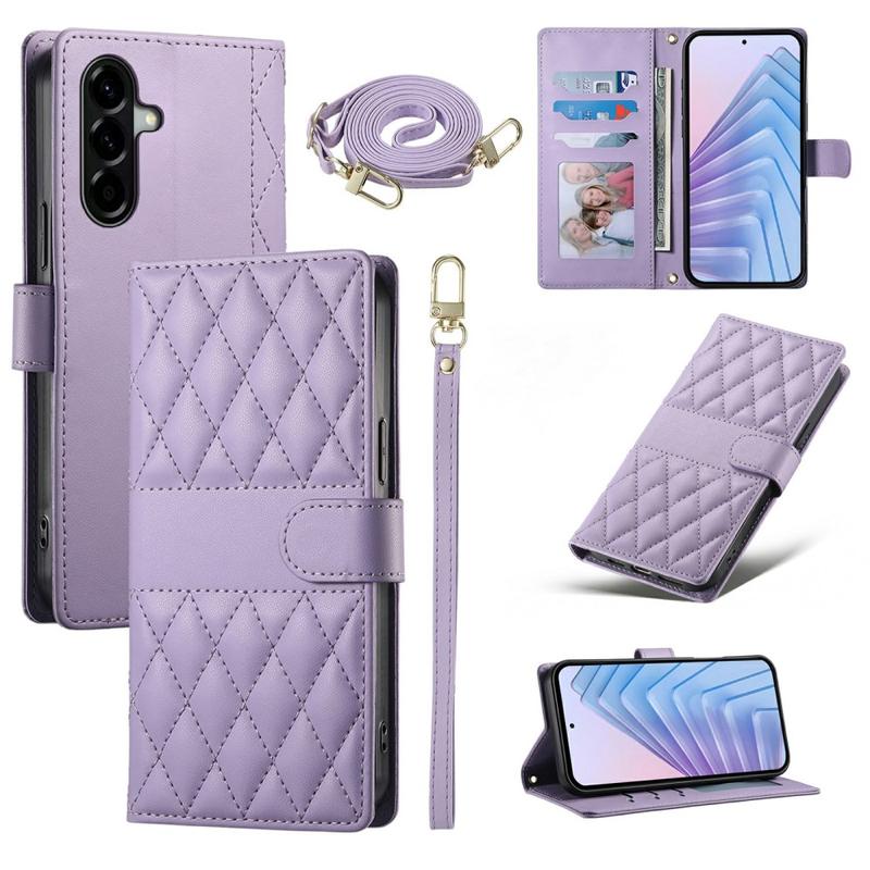 Custodia a portafoglio trapuntata di lusso con tracolla e cinturino per Samsung Galaxy A37 - Copertura protettiva con motivo a rombi