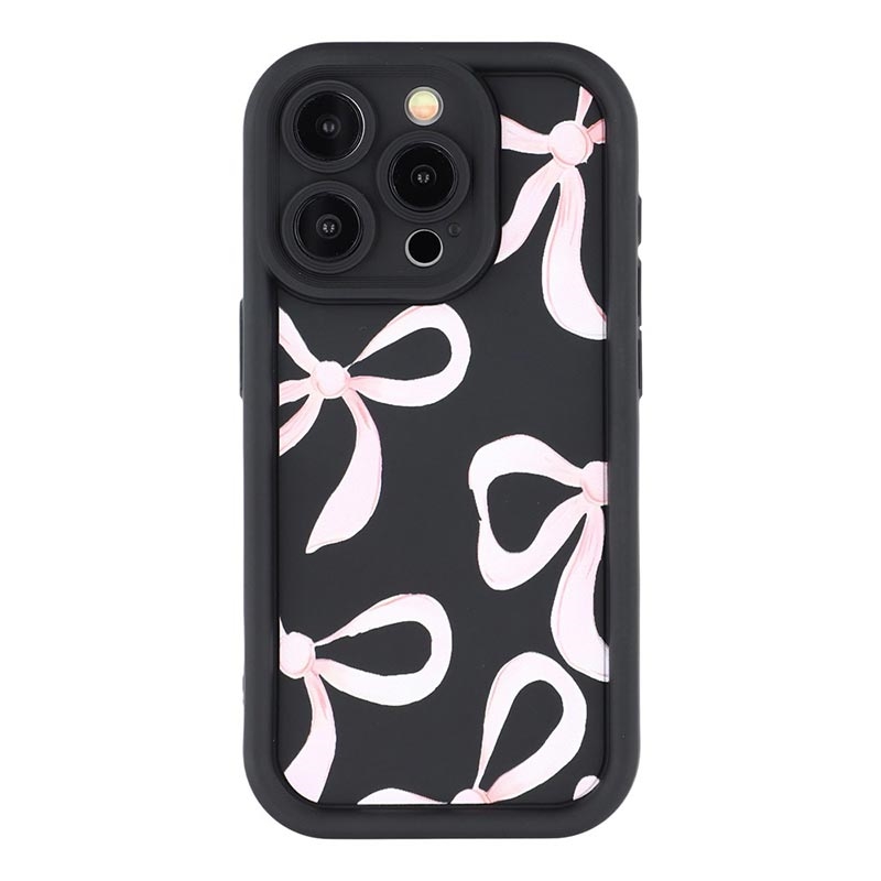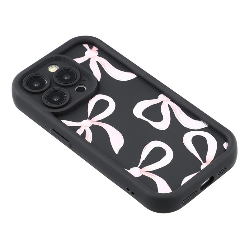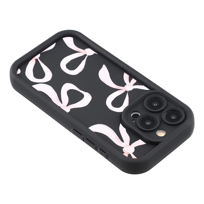 Custodia antiurto in TPU per iPhone 15 Pro Max con bordi rialzati - Nera / Grande fiocco