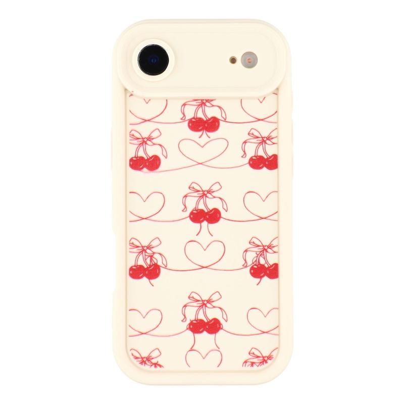 Custodia antiurto in TPU per iPhone Air con bordi rialzati - Bianca / Ciliegie con fiocco