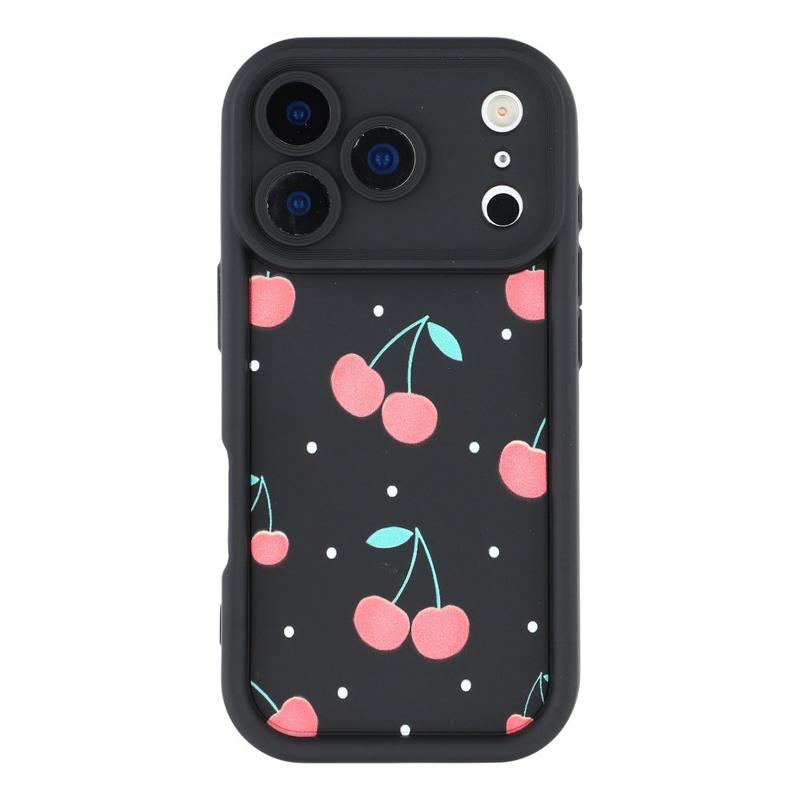 Custodia antiurto in TPU per iPhone 17 Pro Max con bordi rialzati - Nero / Ciliegie