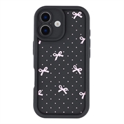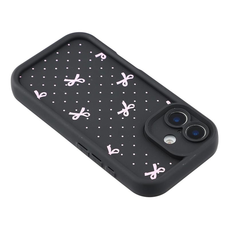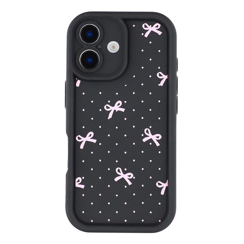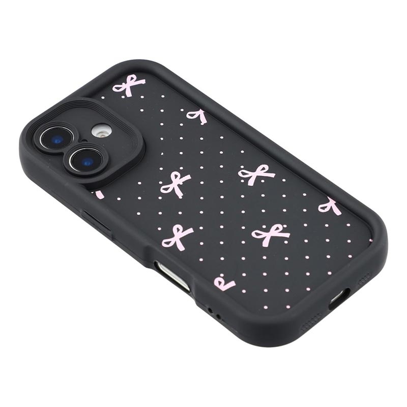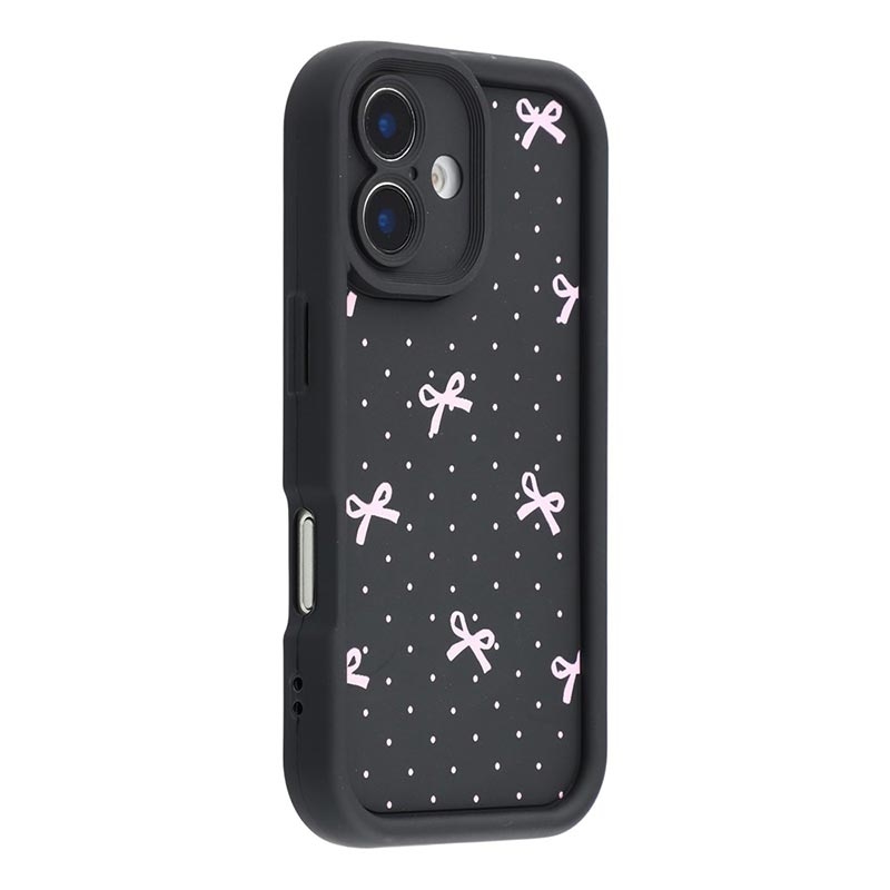 Custodia antiurto in TPU per iPhone 16 con bordi rialzati - Nero / Fiocco a pois