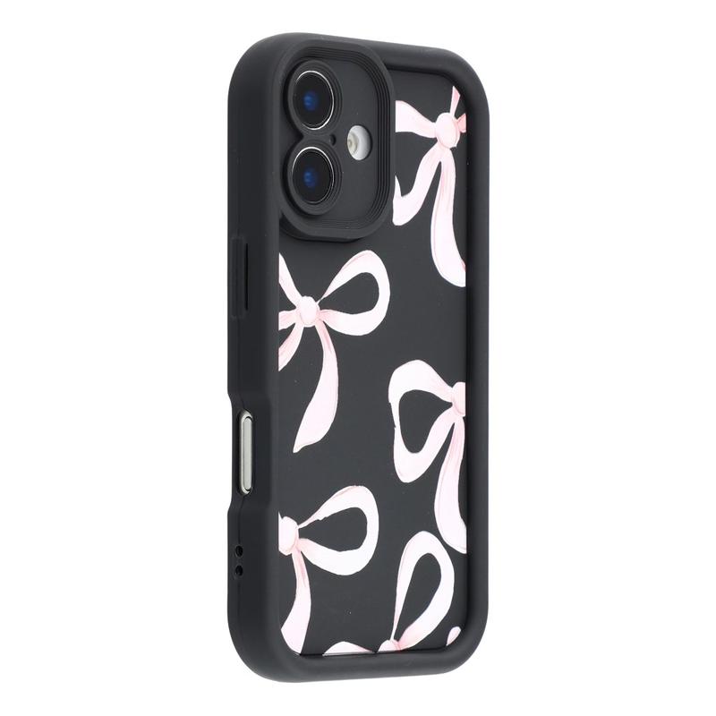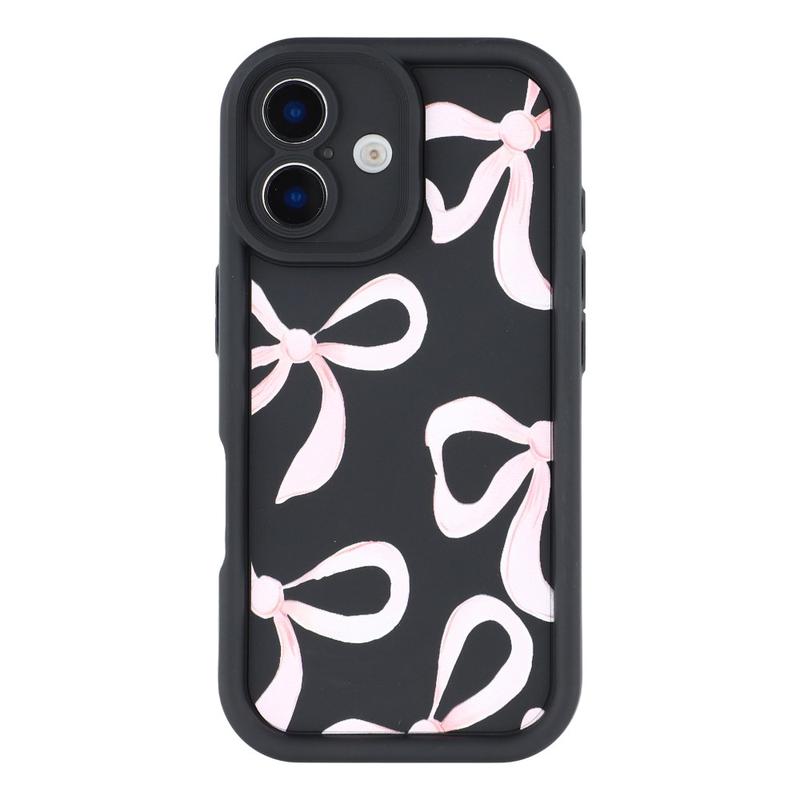 Custodia antiurto in TPU per iPhone 16 con bordi rialzati - Nera / Grande fiocco