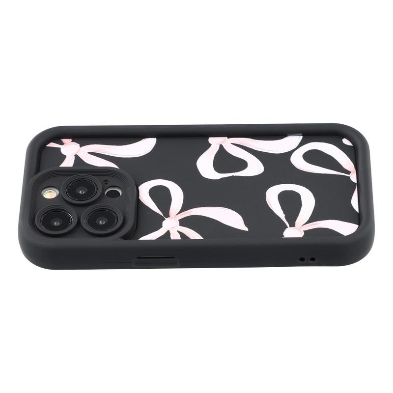 Custodia antiurto in TPU per iPhone 14 Pro con bordi rialzati - Nera / Grande fiocco
