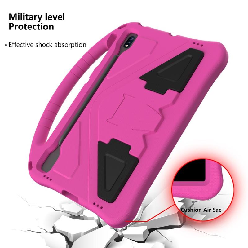 È realizzato in materiale EVA ecologico e non tossico resistente agli urti che rinforza gli angoli e la cornice rialzata che protegge lo schermo da graffi e rotture. Il cavalletto sul retro di questa fantastica custodia per Samsung Galaxy Tab S10+ consente una comoda visione di video a mani libere, mentre la maniglia per il trasporto rende la custodia ancora più pratica ed emozionante per i bambini.