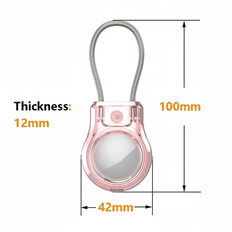 - Filo d'acciaio sicuro - Il cavo in acciaio inossidabile integrato consente di fissare saldamente il tracker a chiavi, zaini, collari di animali domestici, bagagli o biciclette, assicurando che l'Apple AirTag/AirTag 2 rimanga saldamente al suo posto.