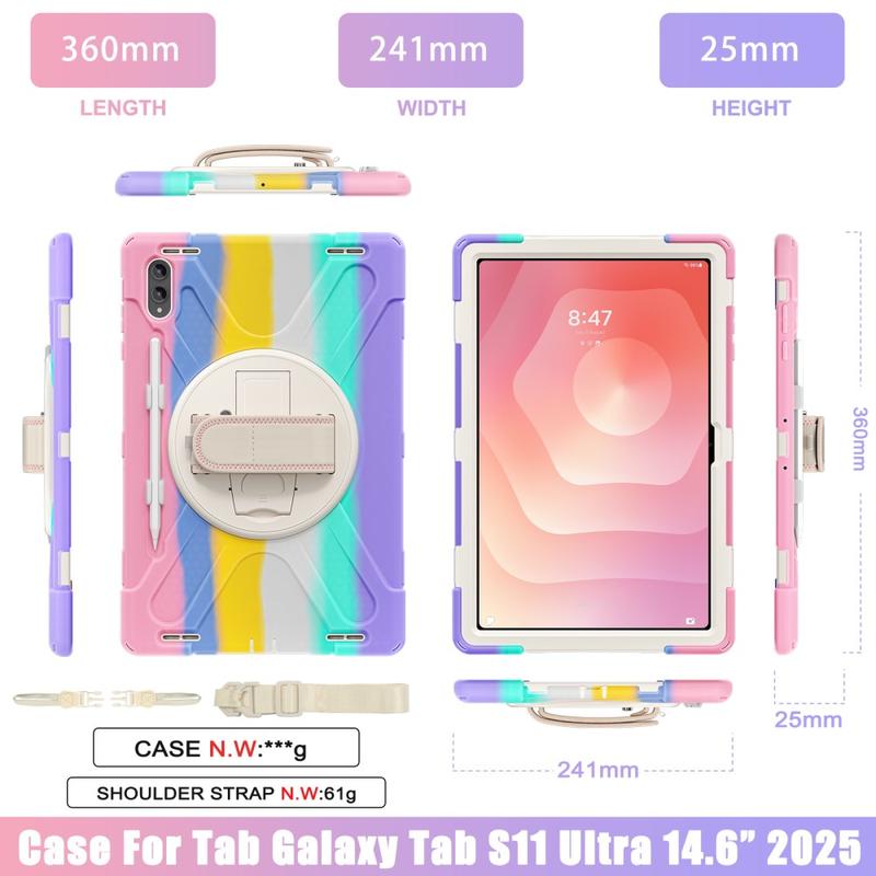 Custodia Rotante Heavy Duty 360 con Cinturino da Polso e Tracolla per Samsung Galaxy Tab S11 Ultra