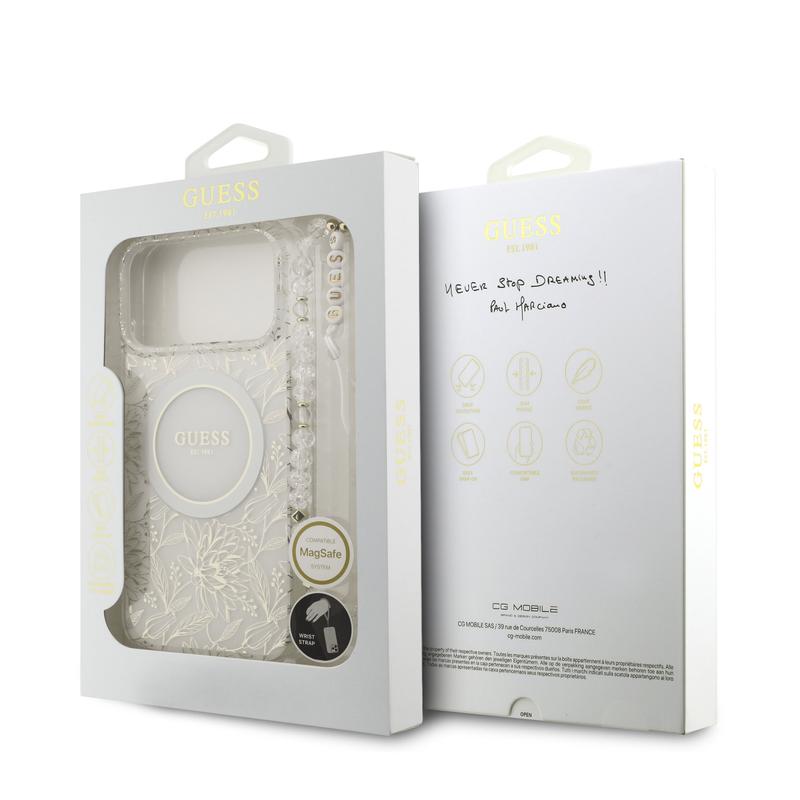 Custodia con cinturino perlato Guess IML Flowers Allover Electro per iPhone 17 Pro Max - Compatibile con MagSafe