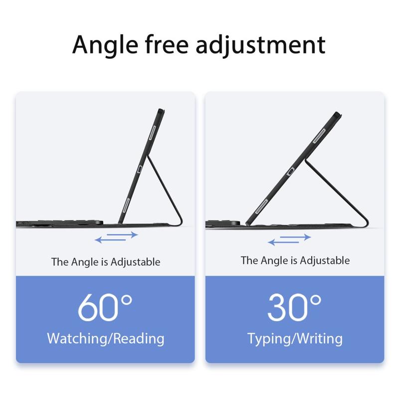 - Funzione stand regolabile - Il supporto pieghevole integrato consente di posizionare il tablet con l'angolo di visione perfetto per scrivere o guardare contenuti.