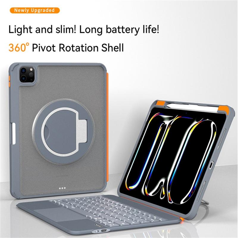 Trasformate il vostro iPad Pro 11 (2024), iPad Pro 11 (2025) in una postazione di lavoro di alto livello con la custodia con tastiera magnetica TU3607, dotata di un supporto completamente ruotabile, tasti colorati retroilluminati e attacco magnetico. Perfetta per professionisti e studenti, unisce funzionalità, flessibilità e stile moderno in un design elegante.