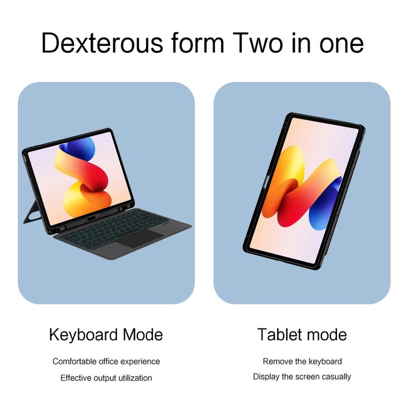Migliorate il vostro Xiaomi Redmi Pad 2 Pro con la custodia con tastiera Bluetooth, un accessorio multifunzionale 2 in 1 che unisce protezione, produttività e stile. Realizzata in poliuretano di prima qualità, questa elegante custodia offre una protezione completa contro graffi, urti e impronte digitali, mantenendo un aspetto professionale. La tastiera Bluetooth staccabile si collega in modalità wireless per una digitazione fluida e reattiva, mentre il touchpad integrato supporta il controllo multi-gesture per una navigazione senza sforzo. La tastiera retroilluminata consente di digitare comodamente anche in ambienti poco illuminati. Il supporto regolabile integrato offre un angolo di visione ergonomico, che lo rende perfetto per la digitazione, lo streaming o la lettura. Progettata per il lavoro, i viaggi o l'uso quotidiano, questa custodia con tastiera trasforma il tablet in una postazione di lavoro portatile.