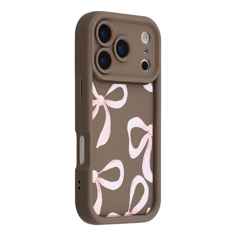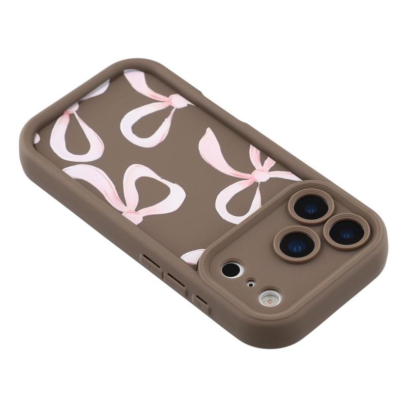 Custodia elegante in TPU antiurto per iPhone 17 Pro Max con bordi rialzati - Marrone / Grande fiocco