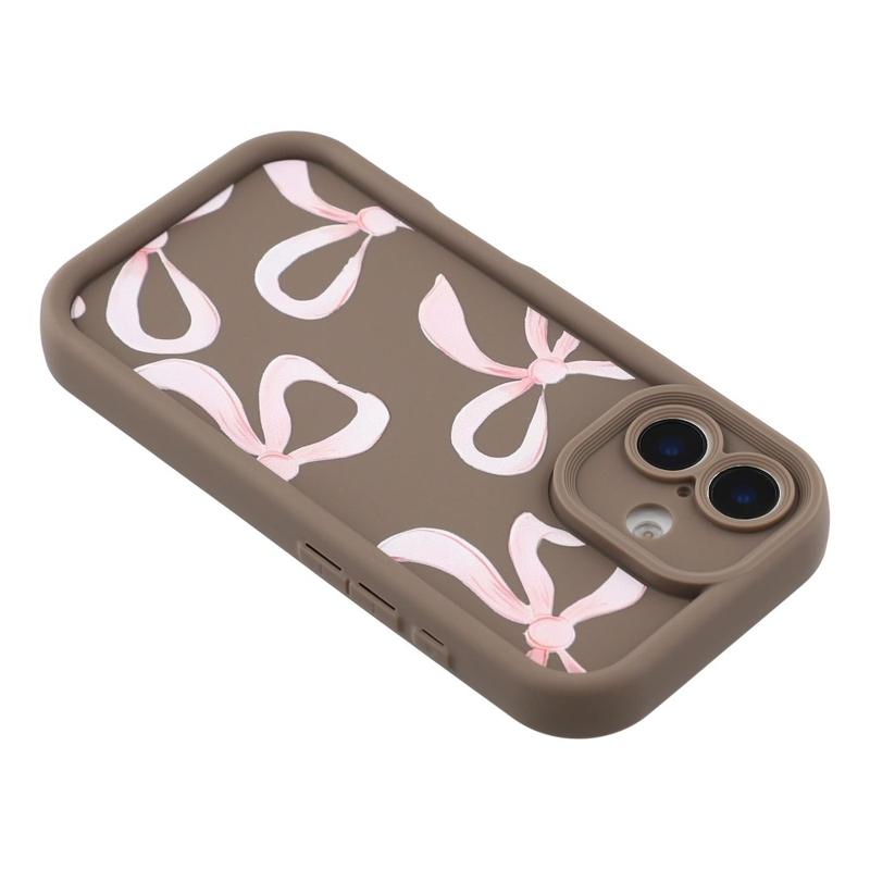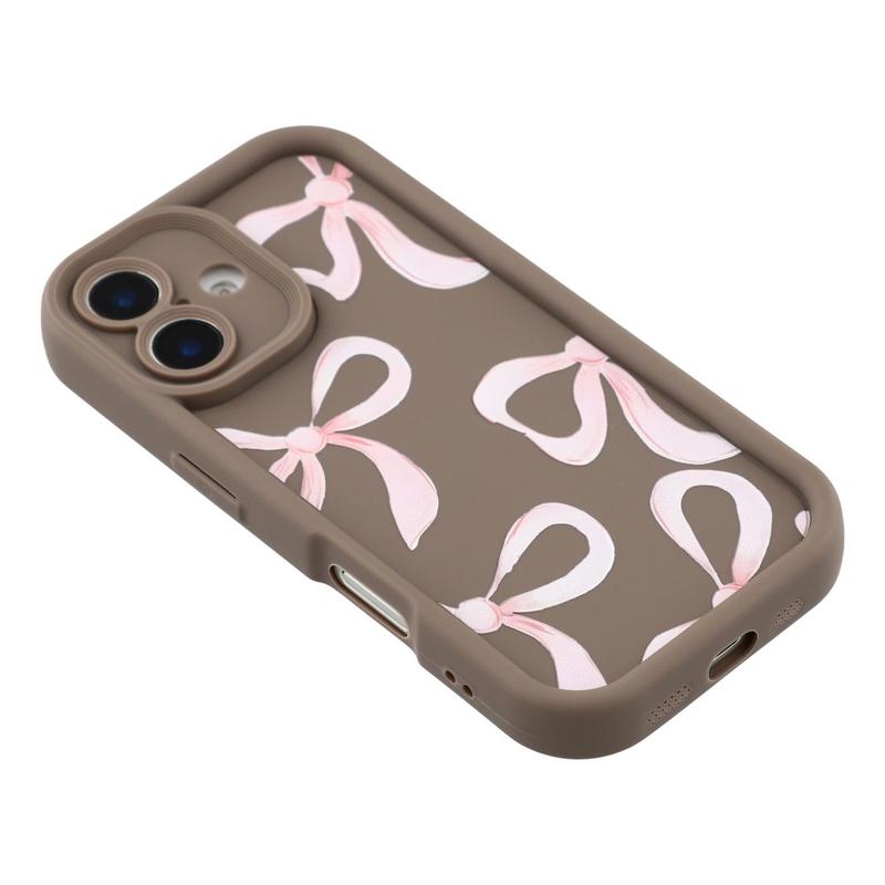 Custodia elegante in TPU antiurto per iPhone 16 con bordi rialzati - Marrone / Grande fiocco