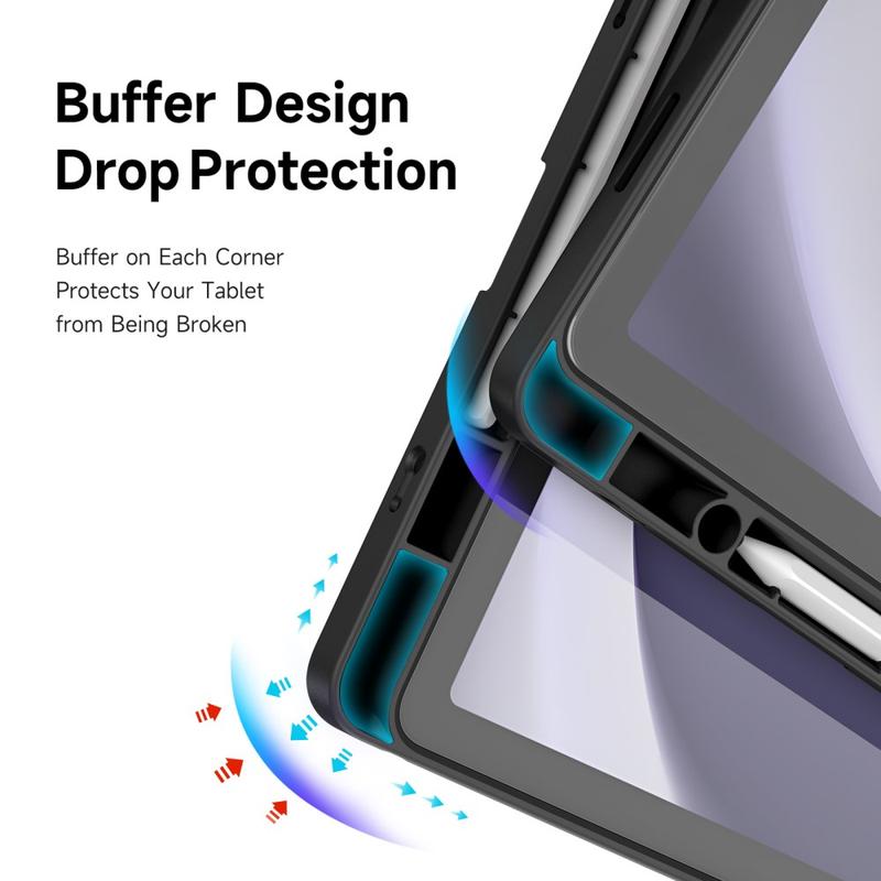 Ultra-sottile: l'esterno sottile, leggero e morbido al tatto è realizzato in pelle PU premium, l'interno antigraffio offre un'ottima protezione e il telaio in TPU + il retro in PC rendono il tablet più stabile.