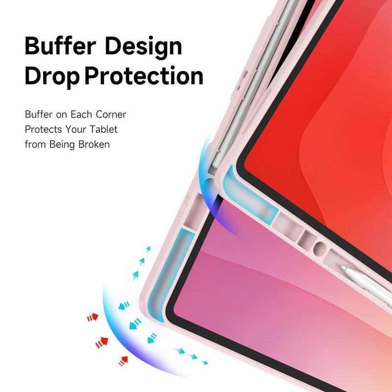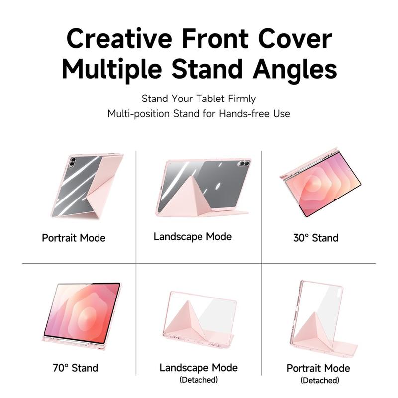 Ultra-sottile: l'esterno anteriore sottile, leggero e morbido al tatto è realizzato in pelle PU premium, l'interno antigraffio offre un'ottima protezione e il telaio in TPU + il retro in PC rendono il tablet più stabile.