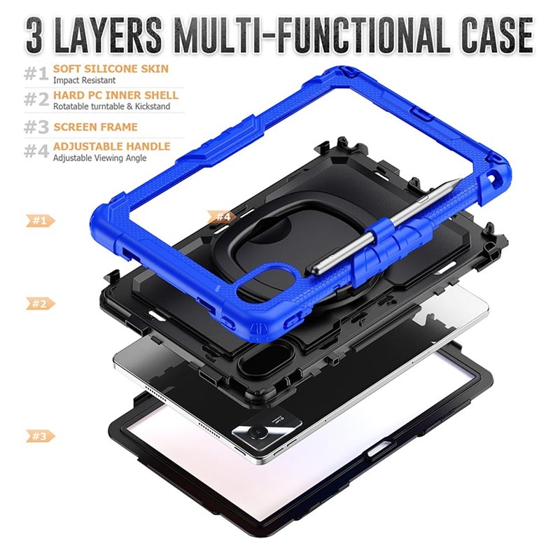 Questa robusta custodia ibrida protegge il tuo Lenovo Tab M11, Idea Tab da danni quotidiani, urti e cadute. Il cavalletto girevole a 360 gradi integrato consente un comodo utilizzo sia con orientamento verticale che orizzontale. Inoltre, la custodia viene fornita con una tracolla e un cinturino da polso, così puoi trasportare in sicurezza il tuo Lenovo Tab M11, Idea Tab.