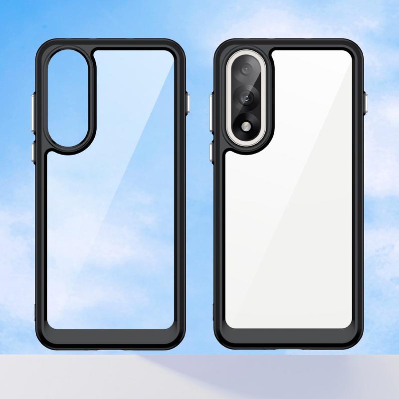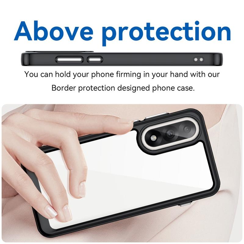- Costruzione a doppio materiale: il pannello posteriore in acrilico trasparente è combinato con bordi in TPU