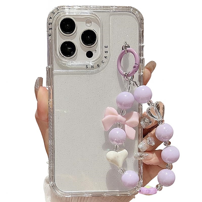 Custodia ibrida antiurto glitterata con cinturino da polso per iPhone 16 Pro - Copertura protettiva in PC + TPU