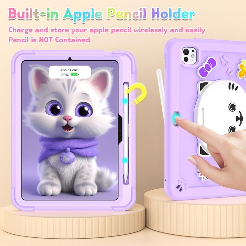 Proteggete il vostro iPad Pro 11 (2024), iPad Pro 11 (2025) con stile grazie alla custodia con kickstand a forma di gatto, progettata pensando sia al divertimento che alla funzionalità. La sua struttura ibrida a doppio strato, l'adorabile design del gatto 3D e la pratica kickstand la rendono perfetta per i bambini, gli studenti e tutti coloro che amano una protezione giocosa con funzionalità complete.