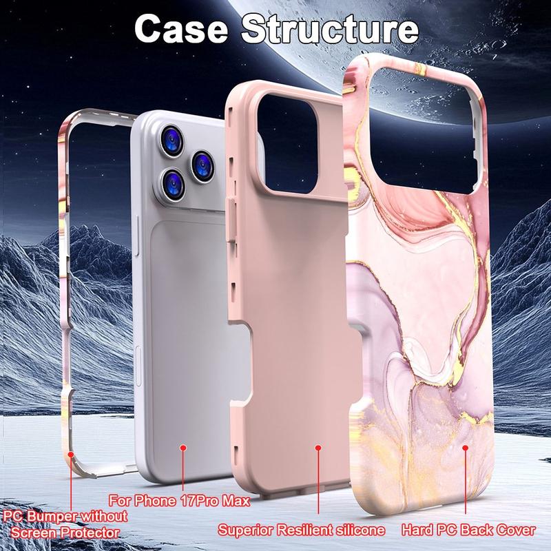 Custodia ibrida in marmo di lusso per iPhone 17 Pro Max - Elegante cover per telefono antiurto in PC e TPU con protezione per la fotocamera
