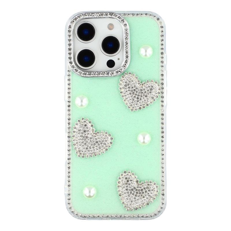 Questa custodia per iPhone 16 Pro combina l'affidabilità della protezione quotidiana con lo stile glamour. Dotata di strass luccicanti intorno ai bordi e di scintillanti decorazioni a forma di cuore di perla sul retro, trasforma il vostro iPhone 16 Pro in un accessorio alla moda e lo protegge da graffi e urti.
