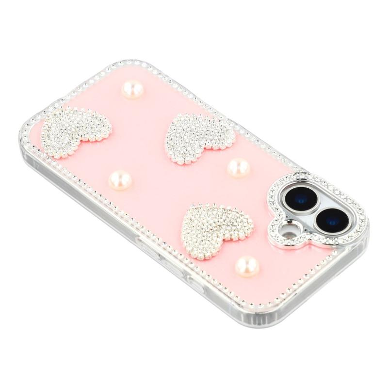 Questa custodia per iPhone 16 combina l'affidabilità della protezione quotidiana con lo stile glamour. Dotata di strass scintillanti intorno ai bordi e di decorazioni a forma di cuore di perla sul retro, trasforma il vostro iPhone 16 in un accessorio alla moda e lo protegge da graffi e urti.