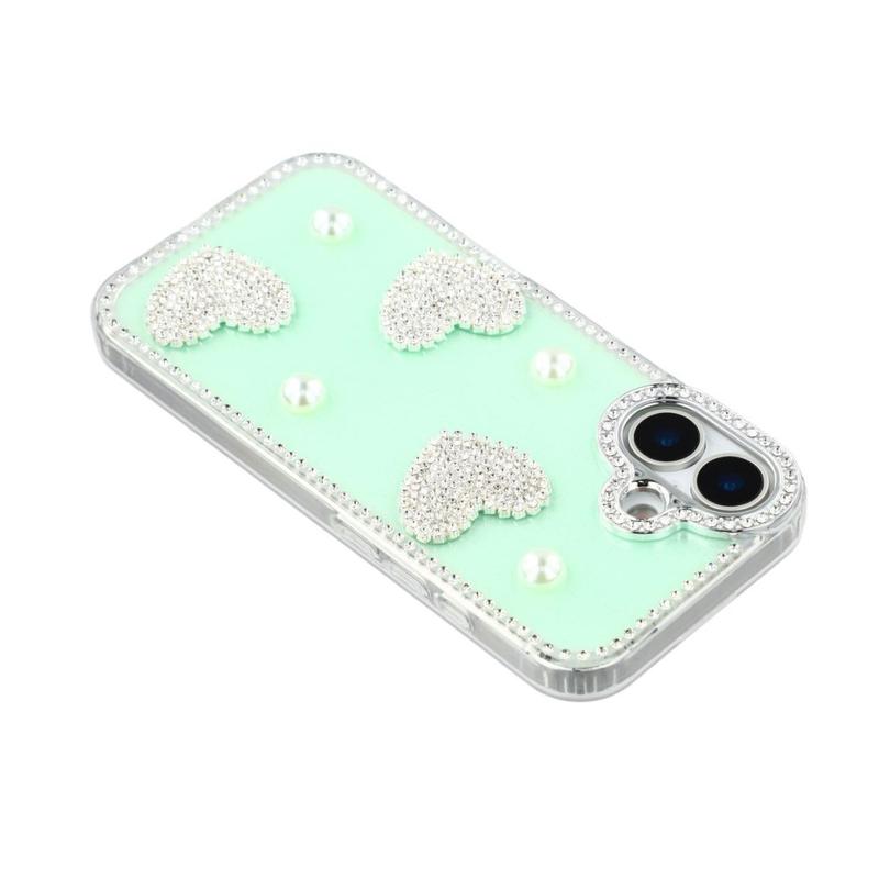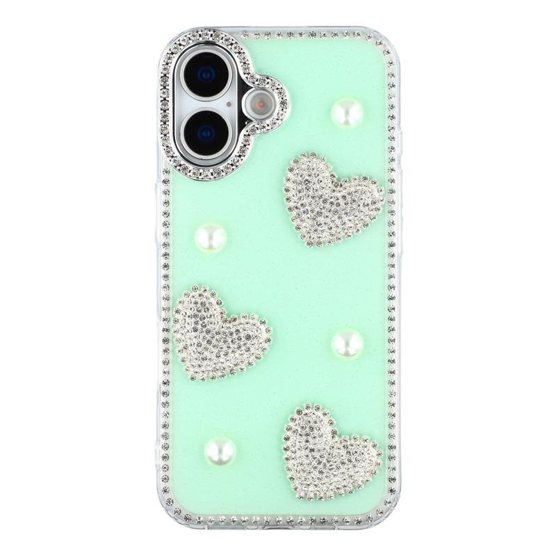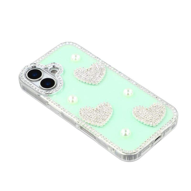 Questa custodia per iPhone 16 combina l'affidabilità della protezione quotidiana con lo stile glamour. Dotata di strass luccicanti intorno ai bordi e di scintillanti decorazioni a forma di cuore di perla sul retro, trasforma il vostro iPhone 16 in un accessorio alla moda e lo protegge da graffi e urti.