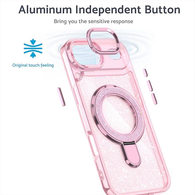 Stile e protezione si uniscono con la custodia glitter per iPhone Air, che combina un'elegante lucentezza con un'affidabile resistenza quotidiana. Realizzata con materiali di alta qualità e dotata di un cavalletto metallico integrato, questa custodia mantiene il telefono sicuro, funzionale e alla moda per tutto il giorno.