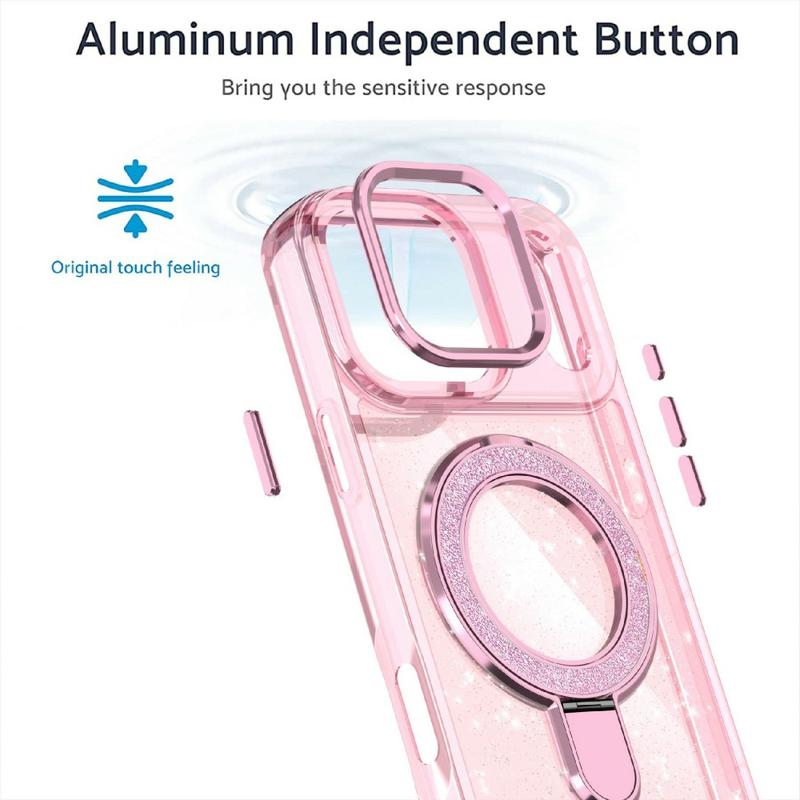 Stile e protezione si uniscono con la custodia glitter per iPhone 17 Pro, che combina un'elegante lucentezza con un'affidabile resistenza quotidiana. Realizzata con materiali di alta qualità e dotata di un cavalletto metallico integrato, questa custodia mantiene il telefono sicuro, funzionale e alla moda per tutto il giorno.
