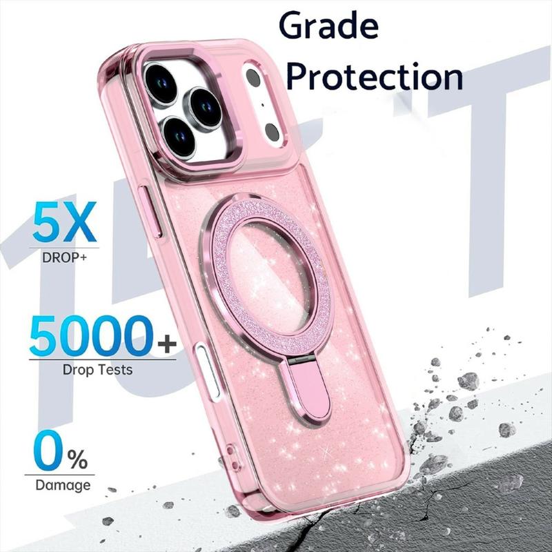 Custodia Glitter con Kickstand per iPhone 17 Pro - Cover Kickstand ibrida in TPU + PC compatibile con MagSafe