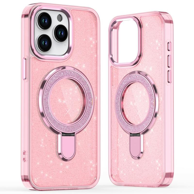 Stile e protezione si uniscono con la custodia glitter per iPhone 15 Pro Max, che combina un'elegante lucentezza con un'affidabile resistenza quotidiana. Realizzata con materiali di alta qualità e dotata di un cavalletto metallico integrato, questa custodia mantiene il telefono sicuro, funzionale e alla moda per tutto il giorno.