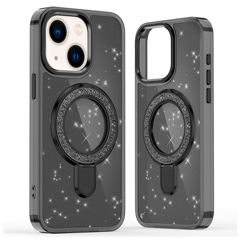 Custodia Glitter con Kickstand per iPhone 15 - Cover Kickstand ibrida in TPU + PC compatibile con MagSafe