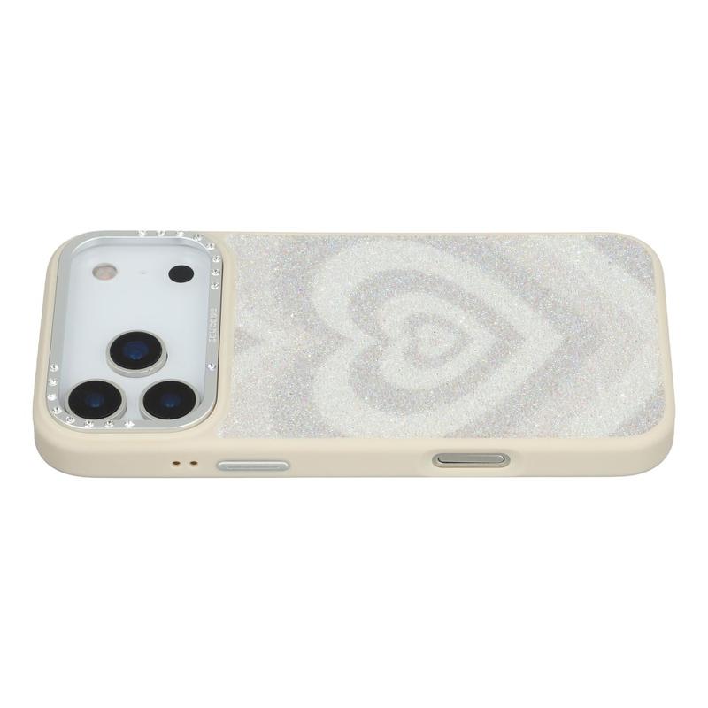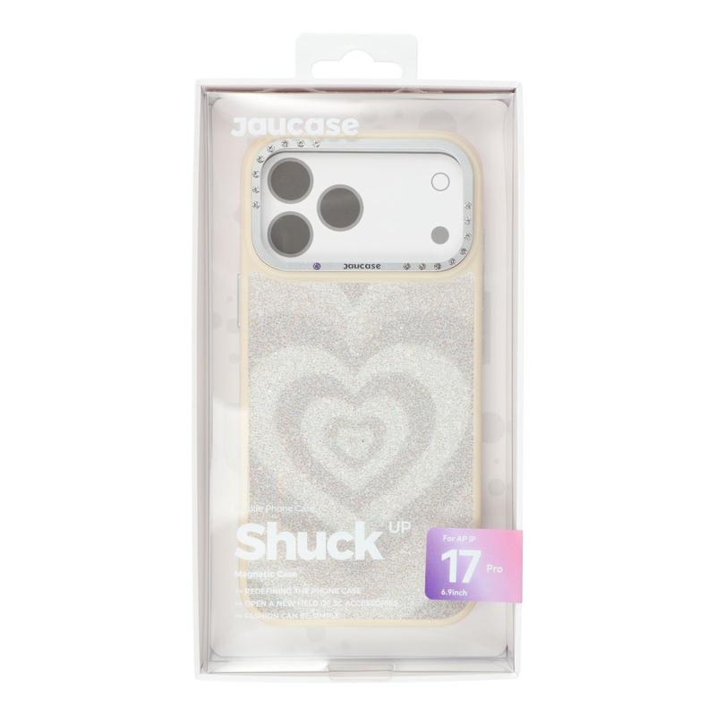 Jaucase Custodia ibrida magnetica con motivo a cuore per iPhone 17 Pro - Poliuretano + TPU + PC con cornice in strass