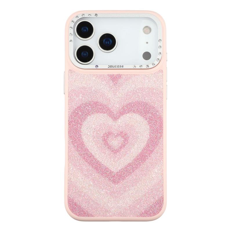 Jaucase Custodia ibrida magnetica con motivo a cuore per iPhone 17 Pro - Poliuretano + TPU + PC con cornice in strass