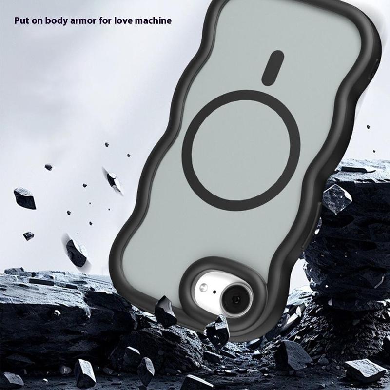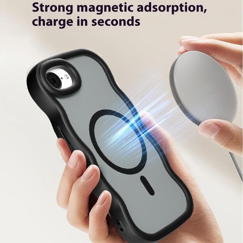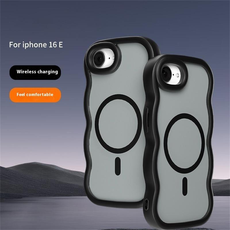 Custodia ibrida magnetica con bordo ondulato per iPhone 16e - Cover protettiva in TPU + PC compatibile con MagSafe
