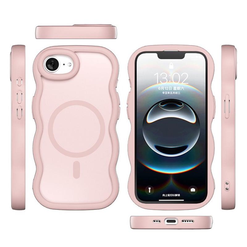 Custodia ibrida magnetica con bordo ondulato per iPhone 16e - Cover protettiva in TPU + PC compatibile con MagSafe