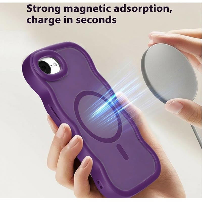 Custodia ibrida magnetica con bordo ondulato per iPhone 16e - Cover protettiva in TPU + PC compatibile con MagSafe