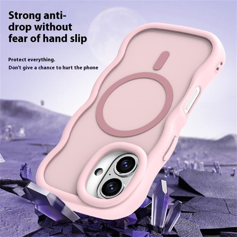 Custodia ibrida magnetica con bordo ondulato per iPhone 16 Plus - Cover protettiva in TPU + PC compatibile con MagSafe