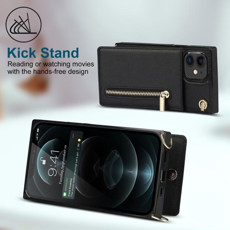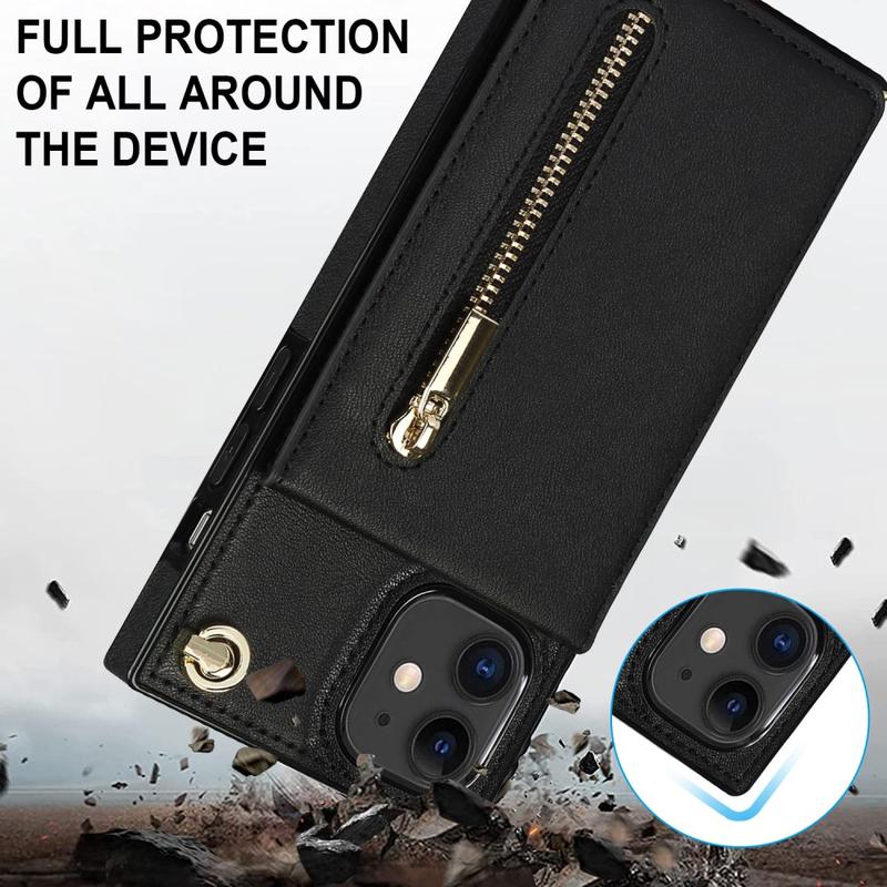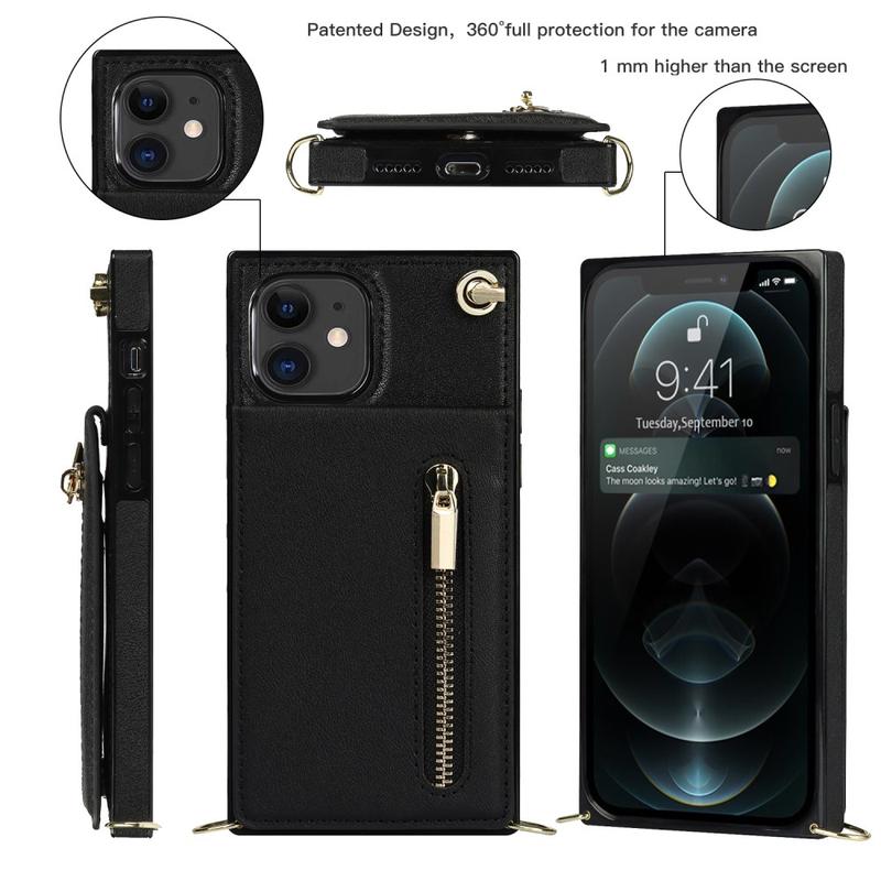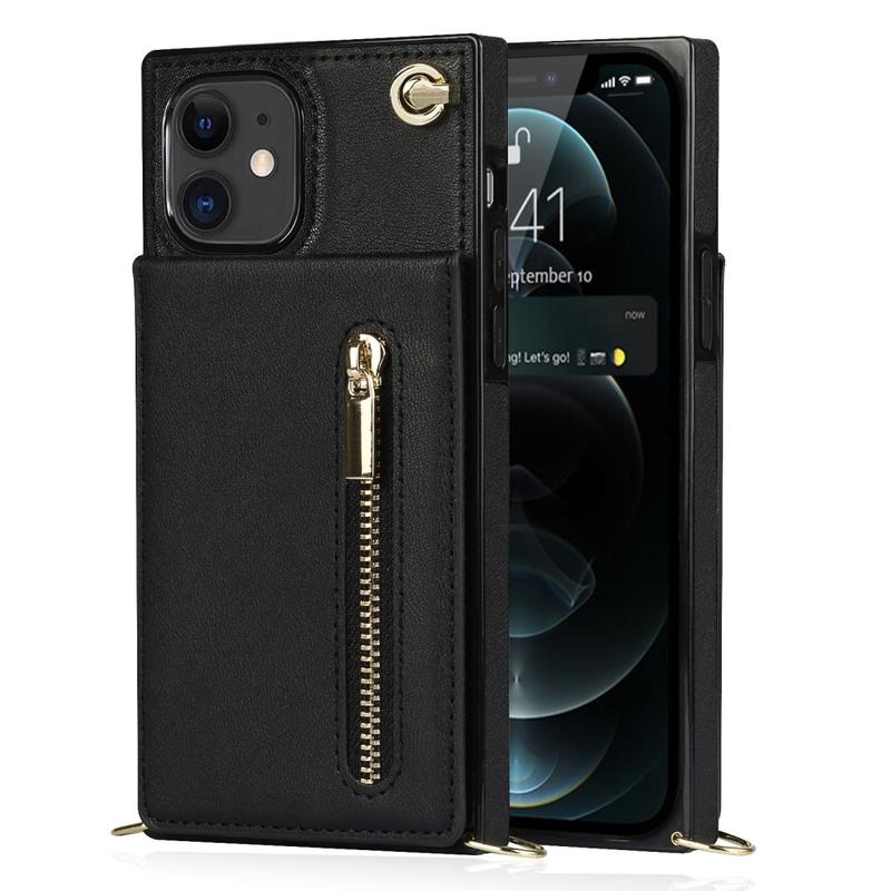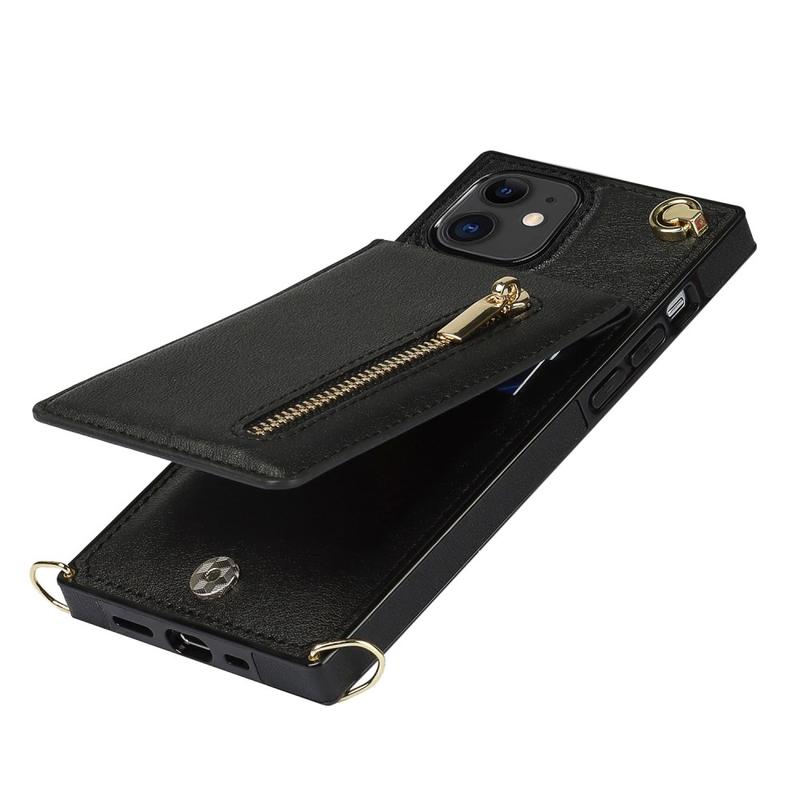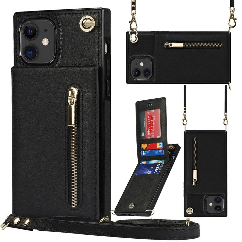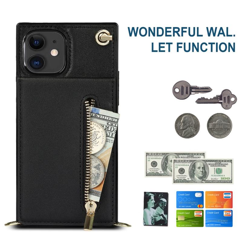 Custodia ibrida con portafoglio e cordino per iPhone 11