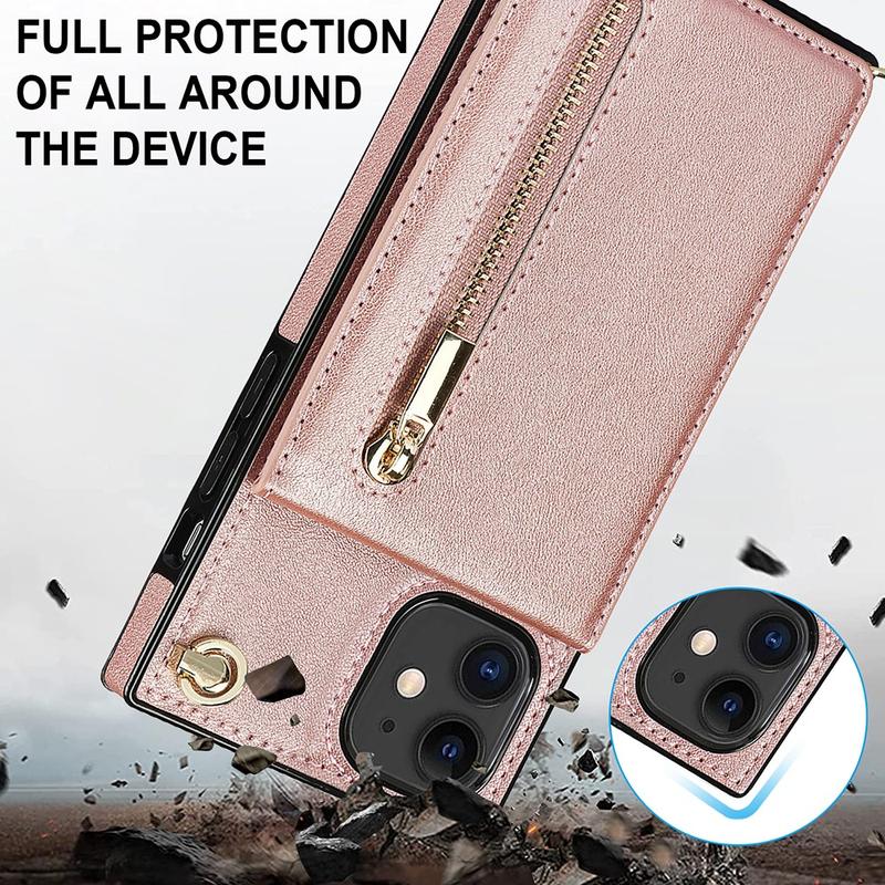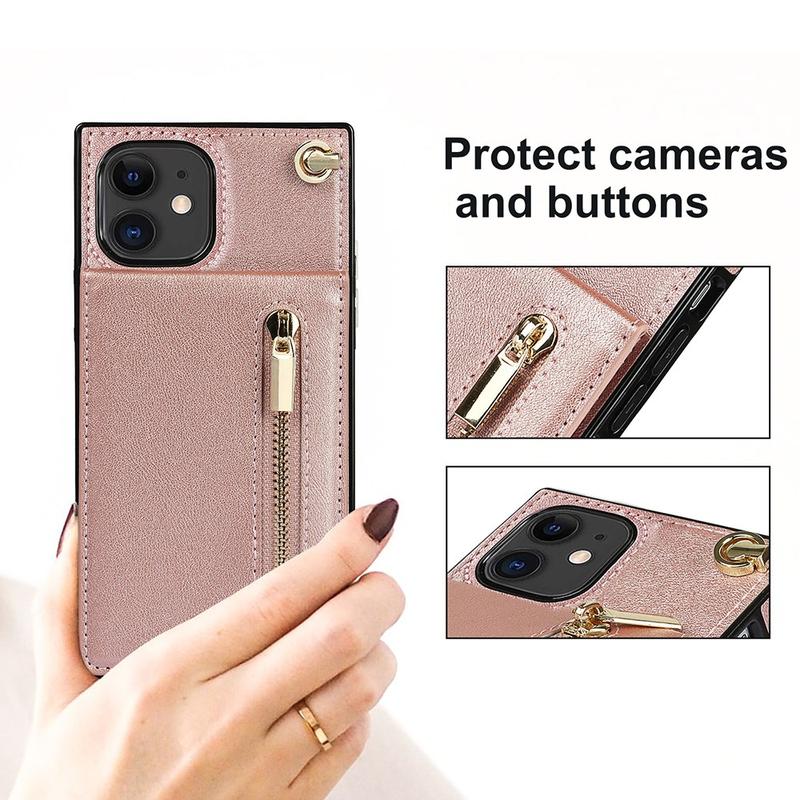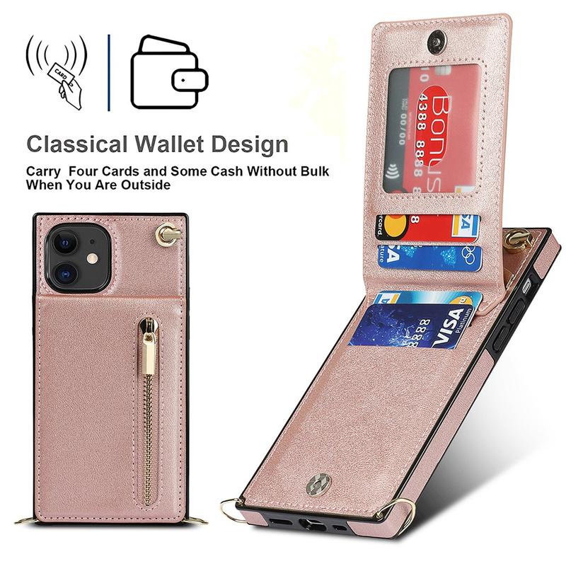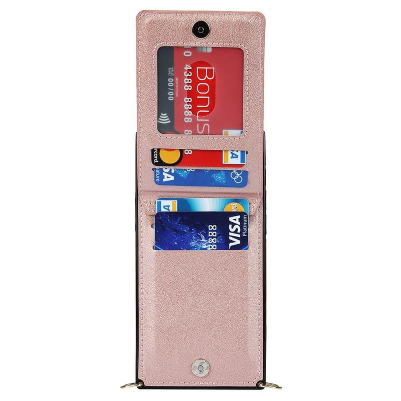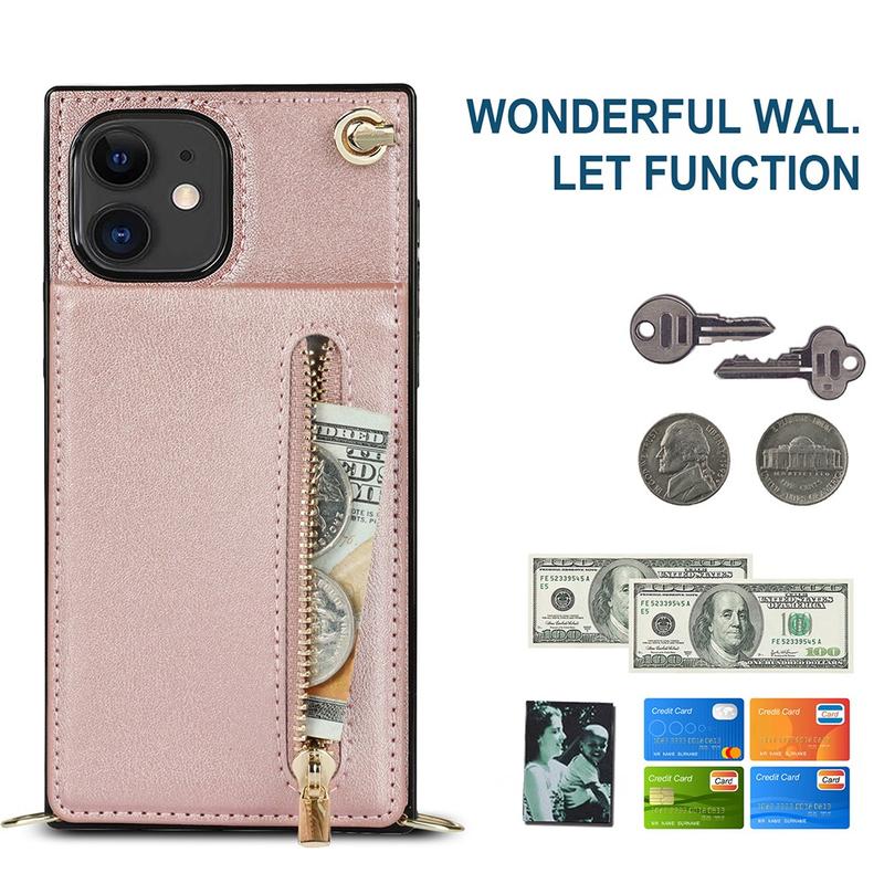 Custodia ibrida con portafoglio e cordino per iPhone 11
