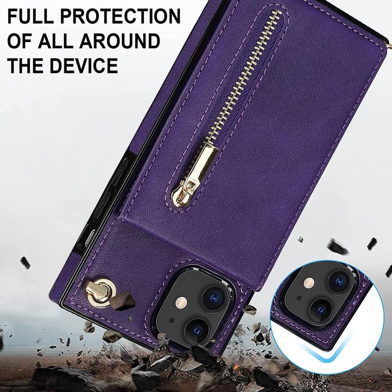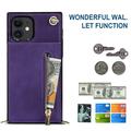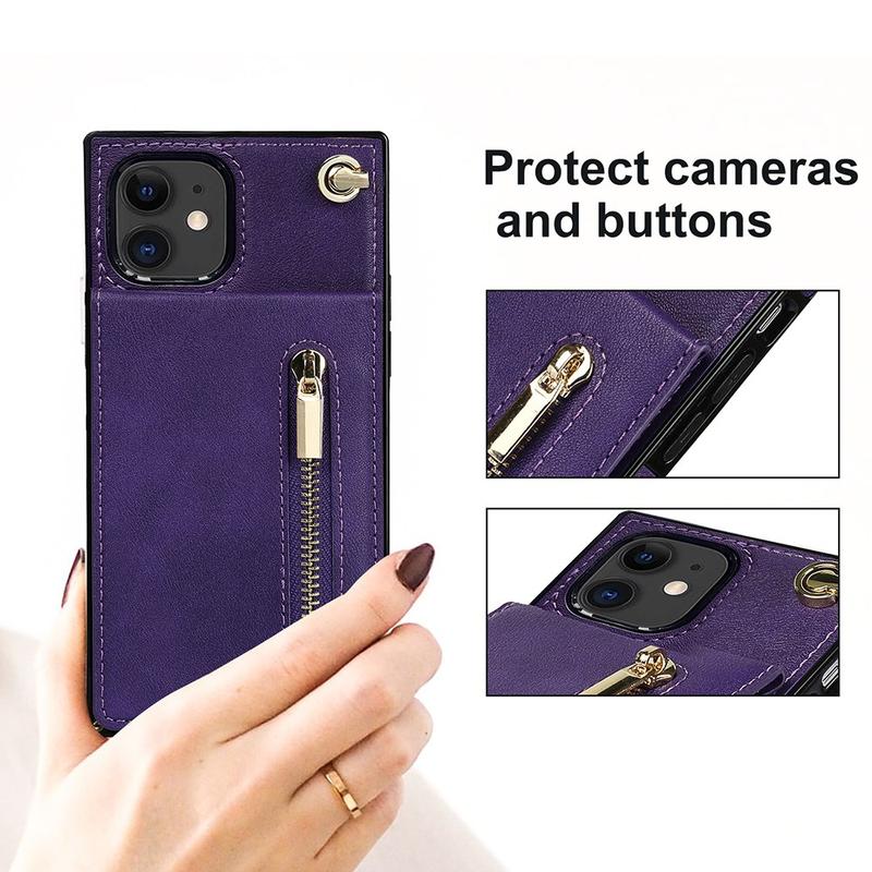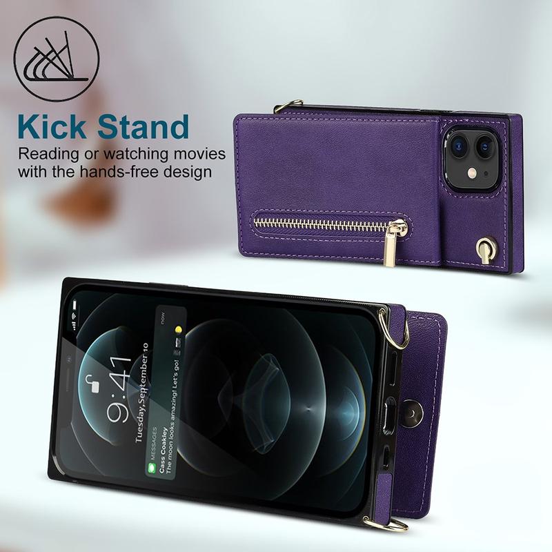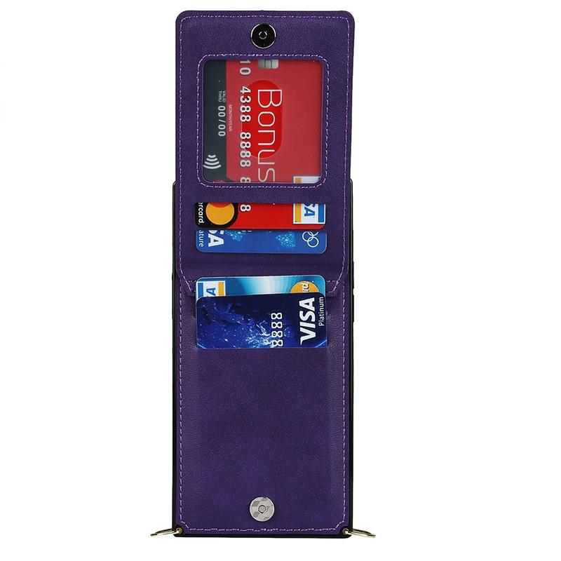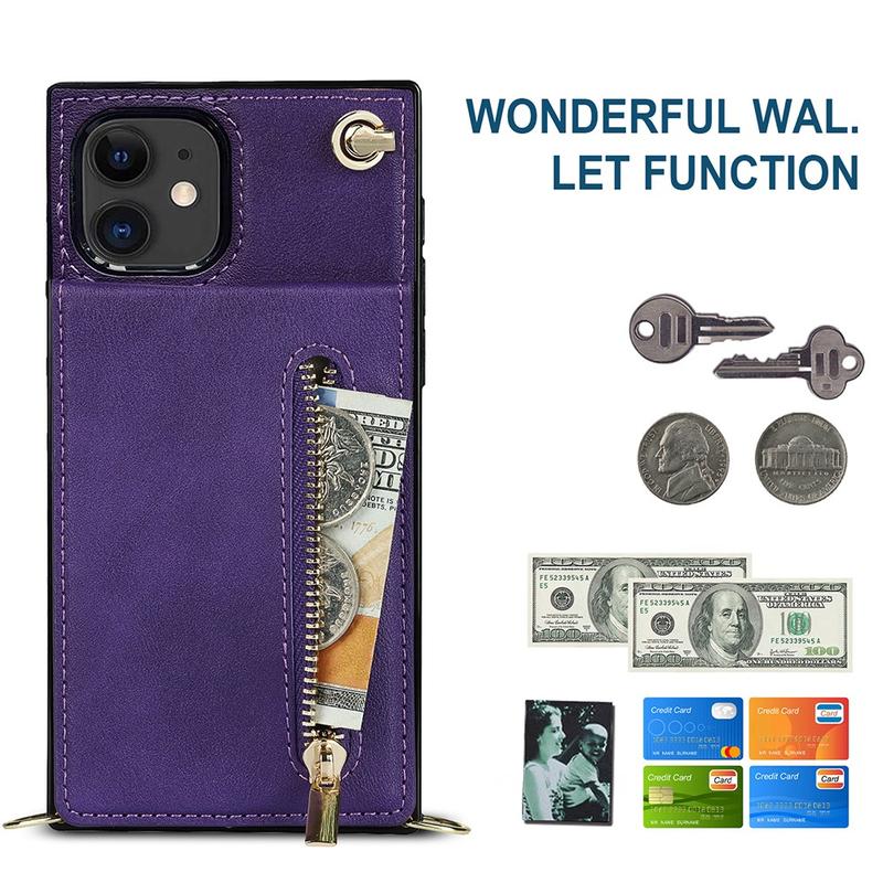 Custodia ibrida con portafoglio e cordino per iPhone 11