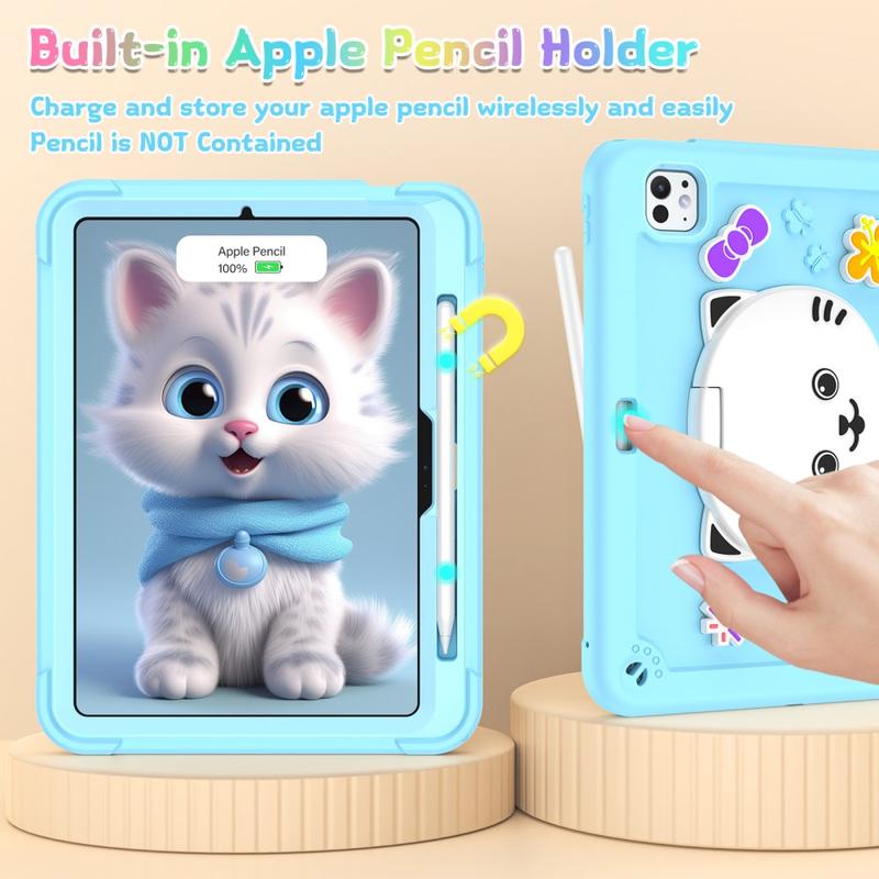 Proteggete il vostro iPad Pro 11 (2024), iPad Pro 11 (2025) con stile grazie alla custodia con kickstand a forma di gatto, progettata pensando sia al divertimento che alla funzionalità. La sua struttura ibrida a doppio strato, l'adorabile design del gatto 3D e la pratica kickstand la rendono perfetta per i bambini, gli studenti e tutti coloro che amano una protezione giocosa con funzionalità complete.