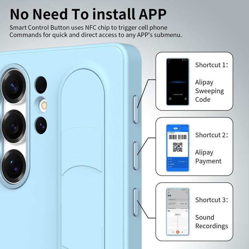Dotata di tre pulsanti intelligenti abilitati alla tecnologia NFC, questa custodia ibrida intelligente consente di impostare l'accesso rapido ad app come Fotocamera, Torcia o Screenshot con una sola pressione. Nessuna ricarica, nessuna applicazione aggiuntiva: solo funzionalità semplici e immediate.
