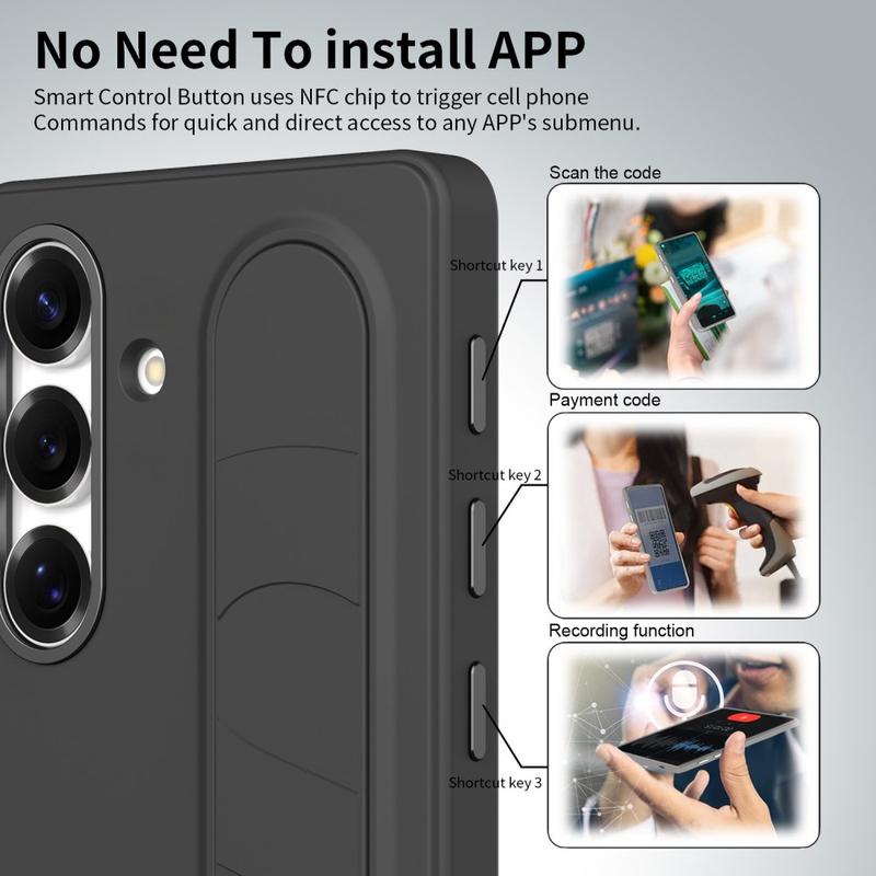 Dotata di tre pulsanti intelligenti abilitati alla tecnologia NFC, questa custodia ibrida intelligente consente di impostare l'accesso rapido ad app come Fotocamera, Torcia o Screenshot con una sola pressione. Nessuna ricarica, nessuna applicazione aggiuntiva: solo funzionalità semplici e immediate.