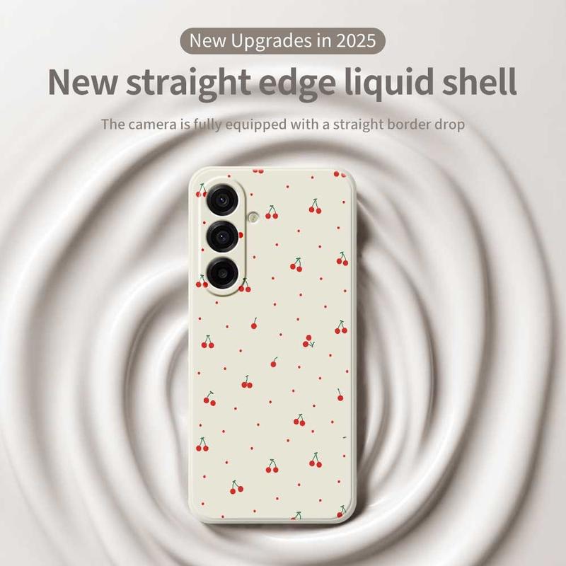 Custodia in TPU con motivo a ciliegia per Samsung Galaxy A17 - Texture in silicone liquido dal tocco morbido con protezione della fotocamera rialzata