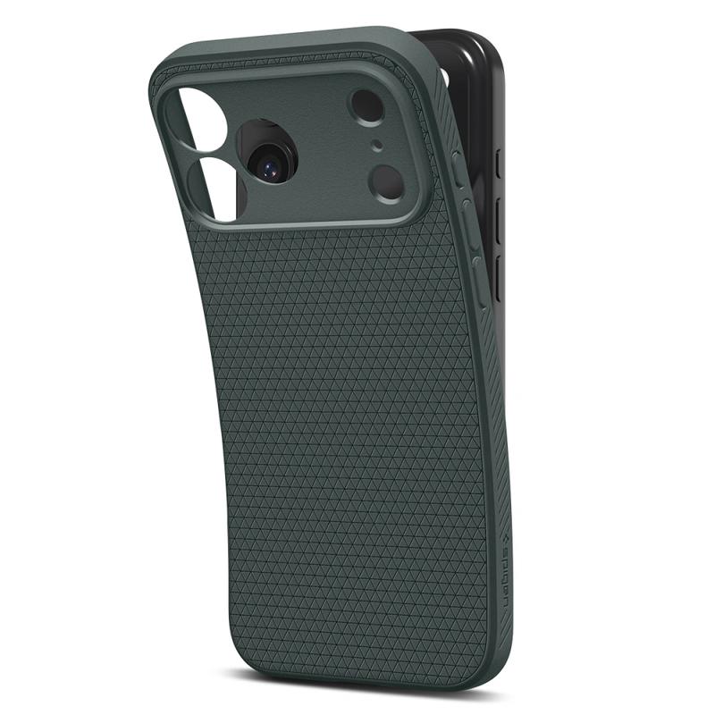 La custodia Spigen Liquid Air per iPhone 17 Pro combina un design elegante con una pratica funzionalità. Il suo profilo sottile mantiene il telefono leggero e tascabile, mentre la finitura opaca con sottili motivi geometrici aggiunge un tocco elegante e moderno.