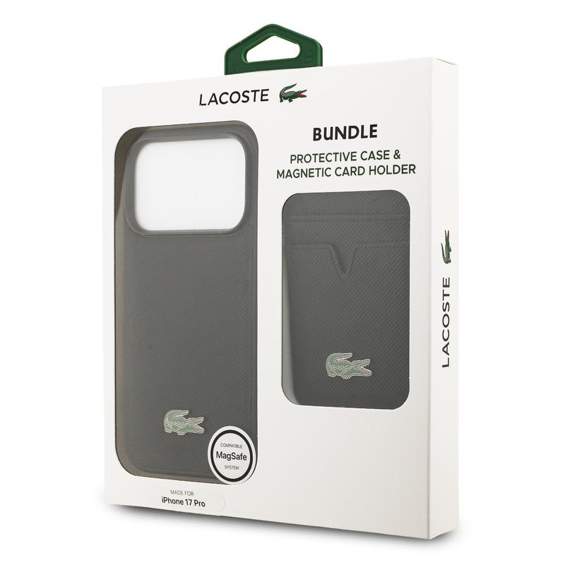 Custodia MagSafe e portacarte magnetico Lacoste Iconic Petit Pique per iPhone 17 Pro - Set di cover e portafogli protettivi premium