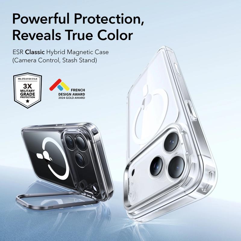 La custodia ESR Classic Hybrid Kickstand per iPhone 17 Pro combina eleganza sottile e protezione potente. Il suo retro rigido trasparente mette in mostra il design originale dell'iPhone 17 Pro, mentre gli angoli rinforzati in TPU garantiscono una maggiore resistenza a cadute e urti.