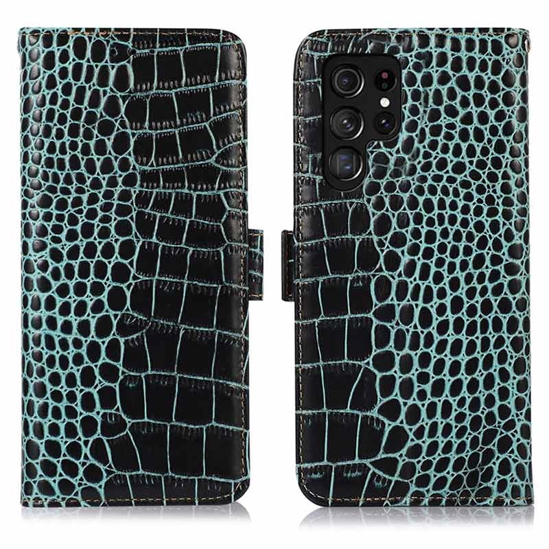Custodia in Pelle a Portafoglio Serie Crocodile con RFID per Samsung Galaxy S26 Ultra