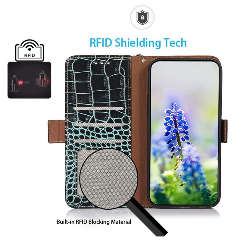 Un portafoglio leggero e morbido con una consistenza coccodrillo unica, la scelta perfetta per proteggere Samsung Galaxy S26 Ultra e mantenerlo intatto. È realizzato in vera pelle di alta qualità e materiale TPU interno, progettato con tre slot di carte, uno slot ID e una tasca per contanti, ideale per trasportare i tuoi elementi essenziali accanto al tuo Samsung Galaxy S26 Ultra. Inoltre, la tecnologia RFID blocca efficacemente i segnali e mantiene i tuoi dati protetti.